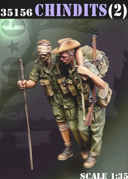 第二次大戦のビルマ戦線で日本軍にゲリラ作戦を展開したイギリス領インド軍の特殊部隊チンディット(ウィンゲート旅団)の兵士を再現する2体入フィギュアセットです。