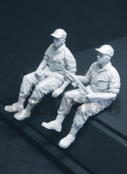 左側の運転手と右側の助手の2体をモデル化しました。どちらも装備品を付けない軽装で、つばのあるキャップを被った姿です。M54/M39、M809、M939/M923 5トントラックなどの各社製トラックキットに最適です。