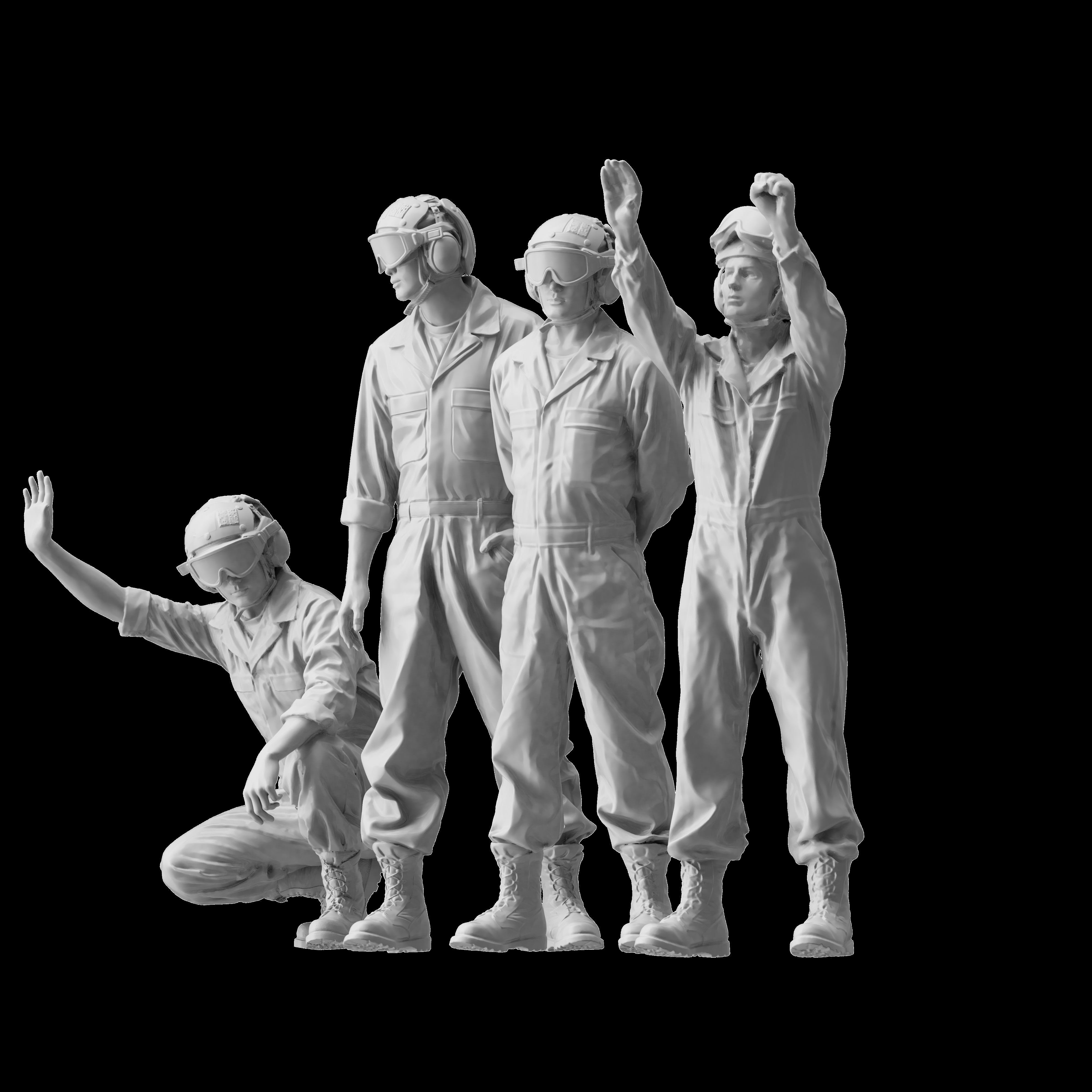 4種類の作業員を、3Dプリントの一体成型で精密に再現します。同スケールのF-35BライトニングII戦闘機、F/A-18C/Dホーネット戦闘機、AV-8BハリアーII攻撃機、AH-1Wスーパーコブラ攻撃ヘリコプターなどの傍らに配置するだけで、生き生きとしたジオラマを展開できるでしょう。