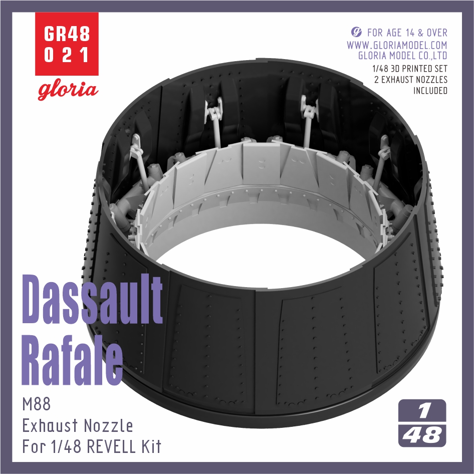 フランス空軍および海軍などが運用するダッソー・ラファールB、ラファールC、ラファールM戦闘機に搭載されるM88-2エンジンの排気ノズルをリアルに再現する3Dプリント製ディテールパーツです。レベル製キットに対応します。