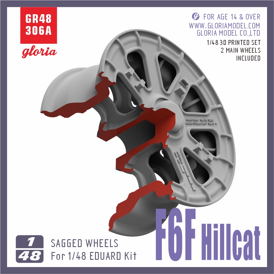 E.T.MODEL[GR48306A]1/48 WWII アメリカ F6Fヘルキャット 自重変形タイヤセット タイプ1(エデュアルド用)