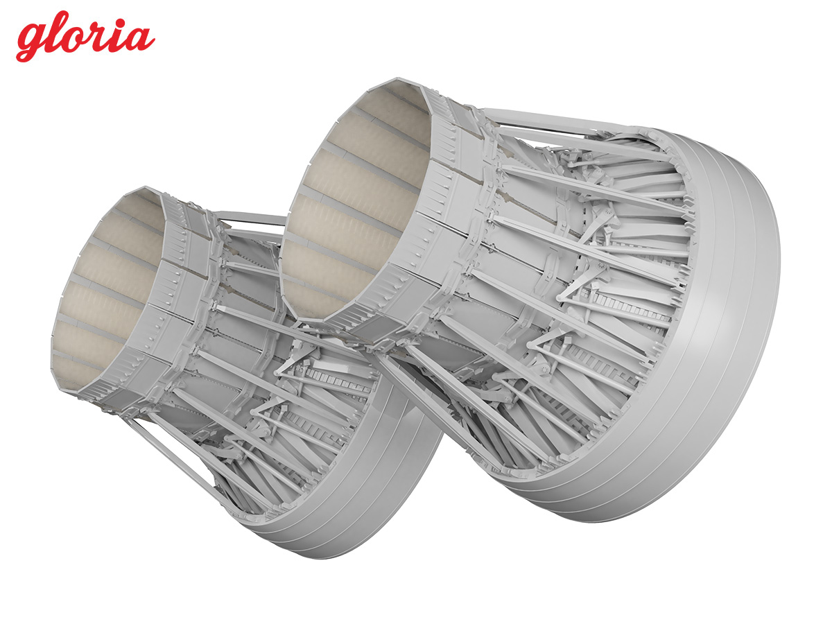 アイリスプレートを外し、ノズルを絞った閉状態をモデル化し、1機分となる2個をセットしています。ノズル奥のアフターバーナー部分も複数パーツで精密に再現しています。