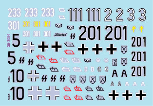 第二次大戦の1943-44年イタリア戦線におけるドイツ軍III号突撃砲G型のマーキングを収録しています。以下の部隊から計6種類をセレクトしています。一部のマーキングはナンバー違いなどのオプションも用意されています。