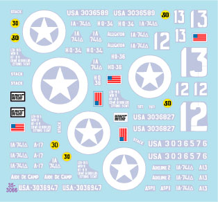 第二次大戦のノルマンディー上陸作戦でオマハビーチに上陸したアメリカ陸軍第741戦車大隊のM4シャーマン戦車各タイプのマーキングを収録しています。M4A1シャーマン戦車、M1ドーザーブレード付M4A1シャーマン戦車の2タイプから計4種類をセレクトしています。