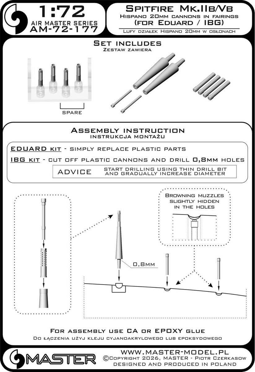 MASTER[AM-72-177]1/72 WWII イギリス スピットファイアMk.IIb/Vb イスパノ20mm機関砲 フェアリング付/ブローニング.303機銃口セット(エデュアルド/IBG用) [ご注文締切日 5月22日(金)6月入荷予定]