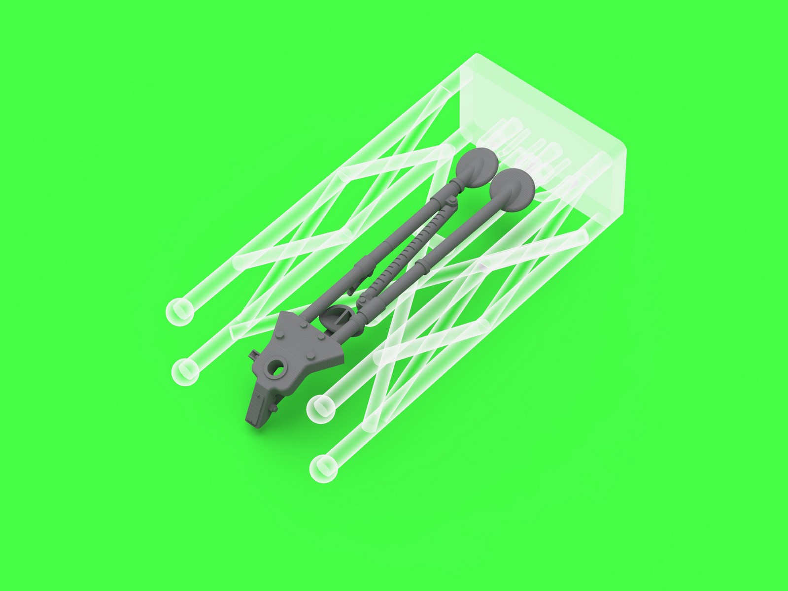 3Dプリント製で格納や輸送のため折り畳んだ状態をモデル化しています。M2三脚は、1930年代から1950年代までにブローニングM1919機銃を搭載した戦車(M3スチュアート軽戦車など)に標準装備されていたほか、歩兵部隊でも広く使用されていました。