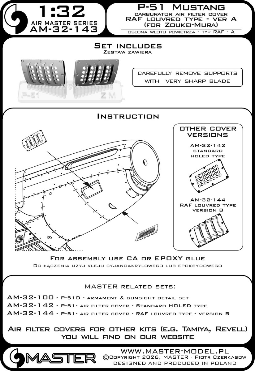 MASTER[AM-32-143]1/32 WWII アメリカ P-51ムスタング キャブレターエアフィルターカバー RAFルーバータイプ バージョンA(造形村用)