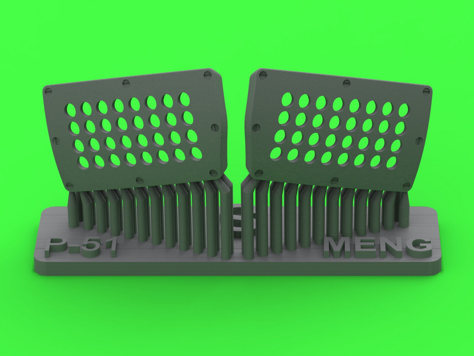第二次大戦アメリカ軍のP-51ムスタング戦闘機の機首下部左右のキャブレターエアフィルターカバーパネルを再現するディテールパーツです。モンモデル製キットに対応します。