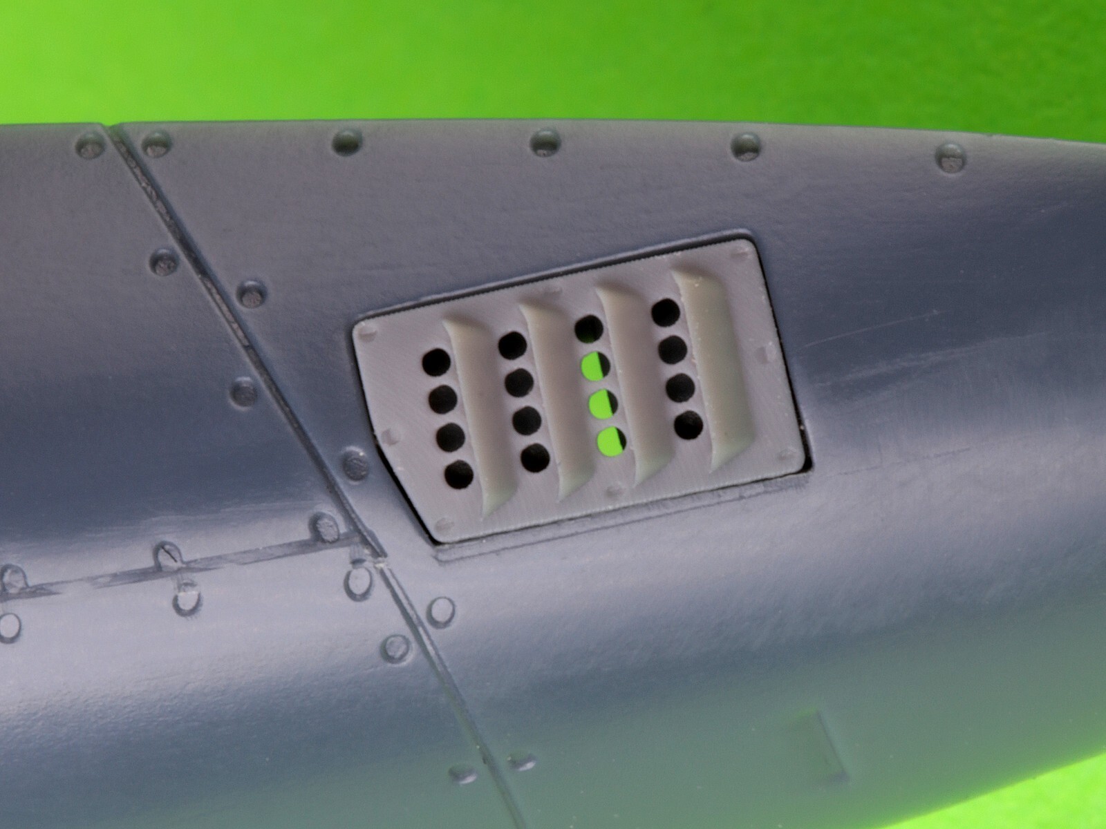 バージョンAでは、イギリス空軍(RAF)機に見られる4枚の短いエラ状のルーバーが追加されたタイプを再現しています。