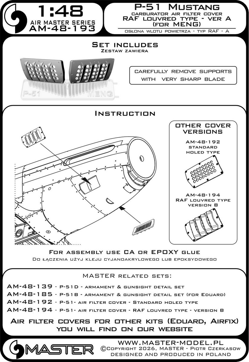 MASTER[AM-48-193]1/48 WWII アメリカ P-51ムスタング キャブレターエアフィルターカバー RAFルーバータイプ バージョンA(モンモデル用)