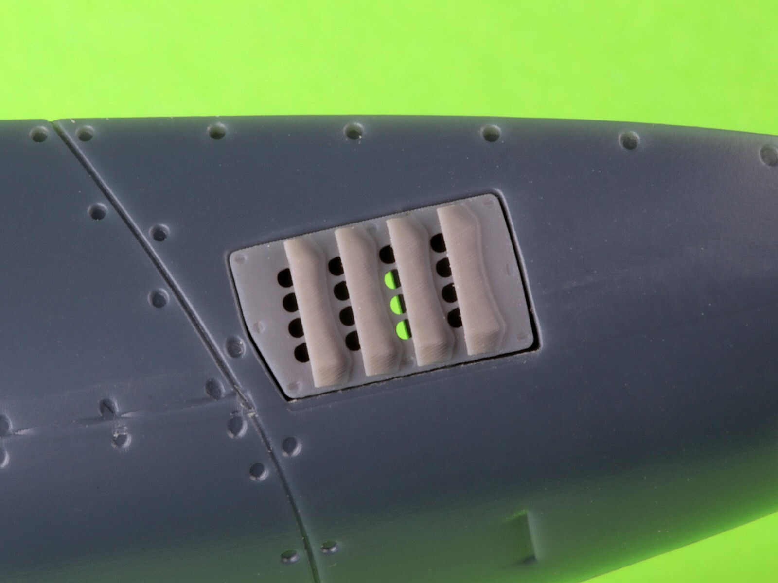 バージョンBでは、イギリス空軍(RAF)機に見られる4枚の長いエラ状のルーバーが追加されたタイプを再現しています。