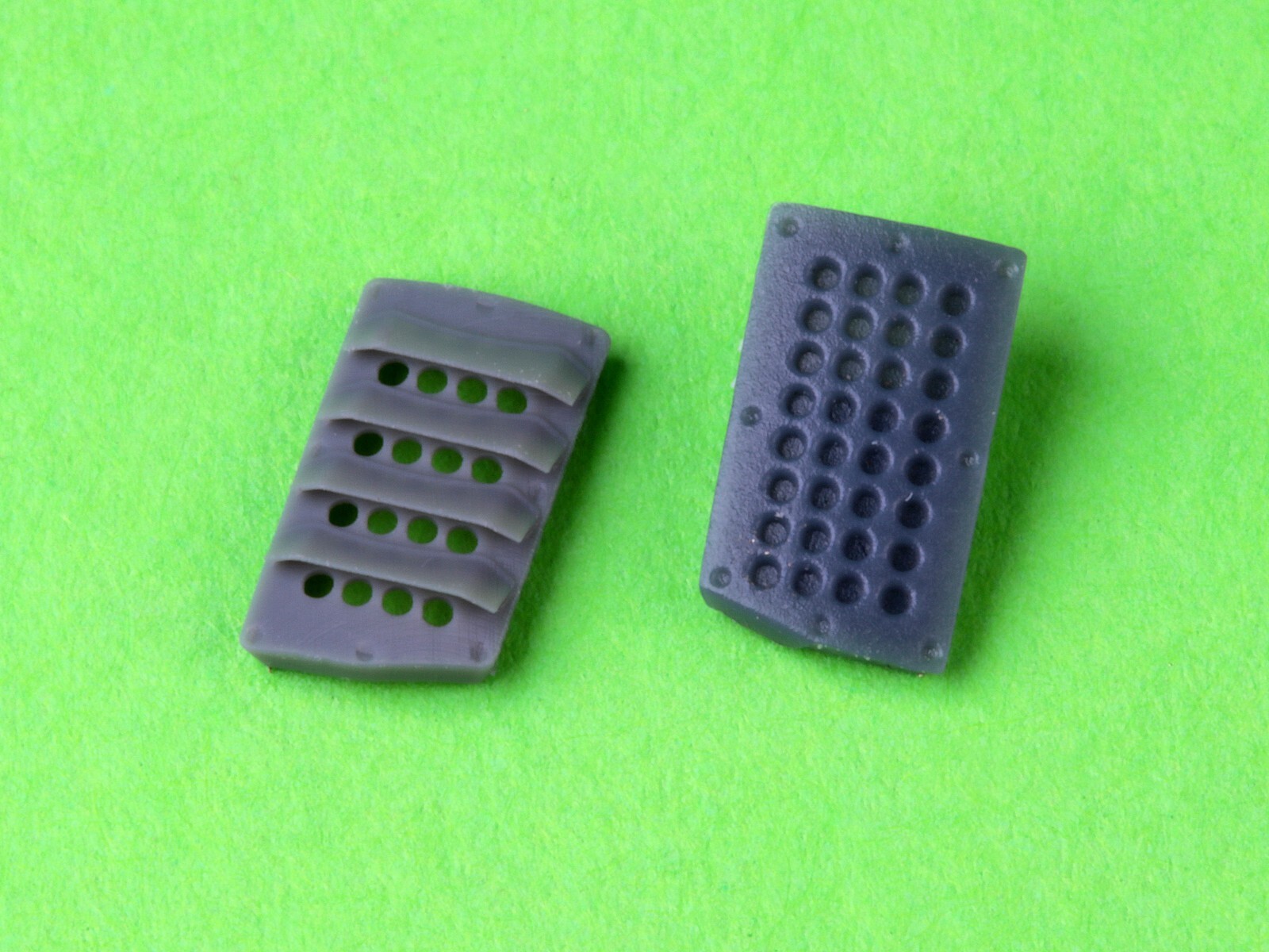 第二次大戦アメリカ軍のP-51ムスタング戦闘機の機首下部左右のキャブレターエアフィルターカバーパネルを再現するディテールパーツです。モンモデル製キットに対応します。