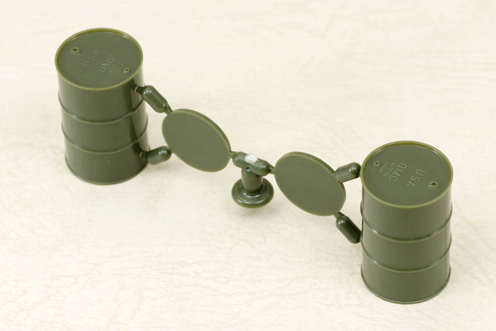 20世紀の初頭に登場して以来、最も一般的なドラムカンのセットです。 各セット12本入り。 情景のアクセサリー、車輛への搭載など、幅広くお使い戴けます。 これまでドラムカンのプラスチックモデルは胴体左右と上下の蓋に部品が分割されている場合が殆どでしたが、 今回胴体と上部の蓋をスライド金型を用いて一体化することで、胴体と底板の僅か2パーツで完成する構成としました。 これにより煩雑な合わせ目消しの手間を省き、実物に近いフチの薄さなどこれまでにないリアルで繊細なディテール表現が可能となりました。 第二次大戦中のアメリカ軍用(35-006)、プレス文字のない汎用(35-007)、35-007にマーキングのデカールを追加して自衛隊用(35-008)を発売致します。