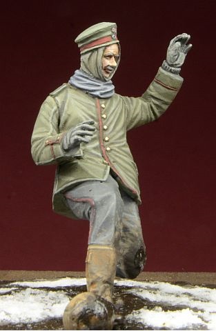 重苦しい雰囲気の多い第一世界大戦のフィギュア群の中、異色のフィギュアです。冬装でサッカーを楽しむドイツ兵の姿が巧みに造形されています。