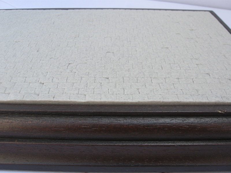 台座の大きさは23x15cm、石畳は22x14cm。石畳は木の台座にキレイに収まります。