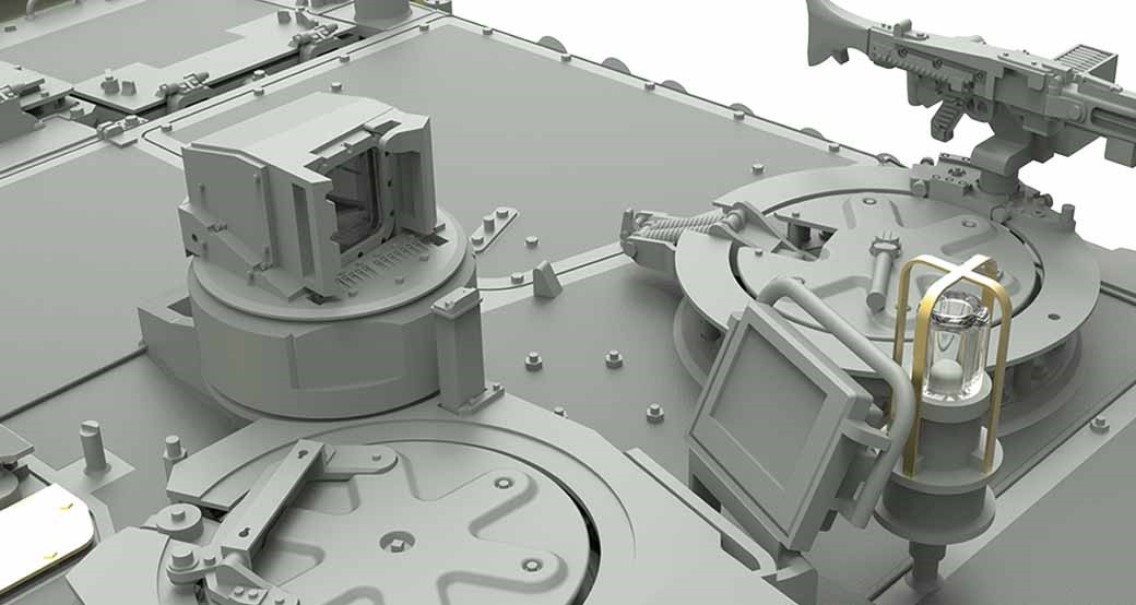 ●砲塔上の赤外線暗視装置と車外ディスプレイ