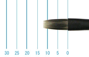 ●ナイロン毛の内側にカールをつけたのがインターロンです。そのため穂先が外側にバラつかず、しなやかなうえに適度な腰の強さと抜群の耐久性を実現しました。タッチを活かした描写も思いのままです。
