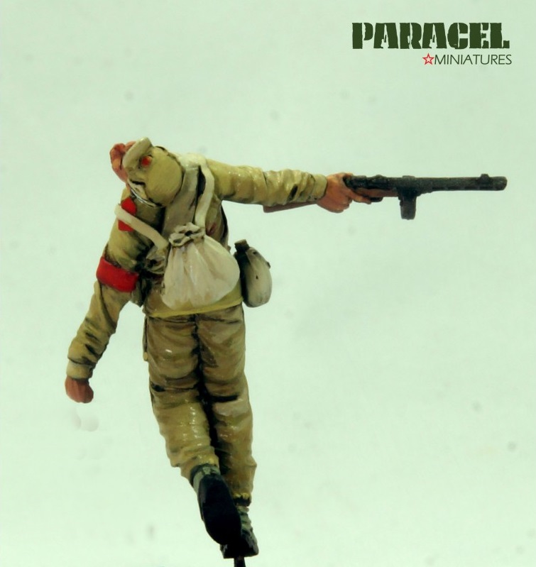 短機関銃を撃つ兵士、被弾した瞬間の兵士の2体セットです。