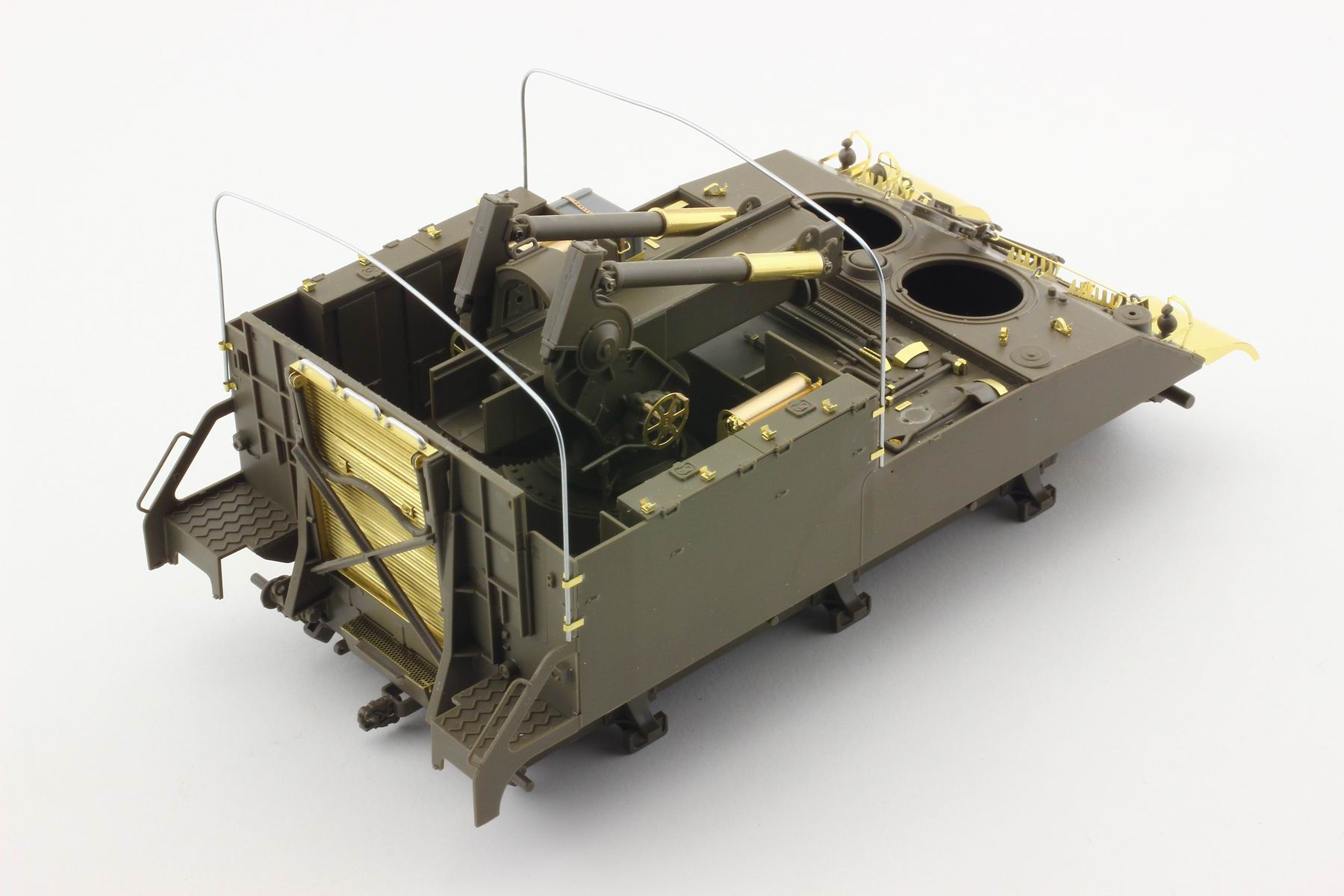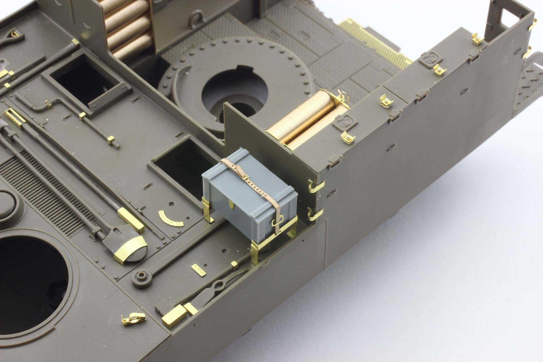 車体後部のプラットフォームや薬莢庫をまるごと作り替えるほか、キャンバスの幌骨やフック類を作るための治具が付属するなど、オレンジホビーらしいユニークな内容です。