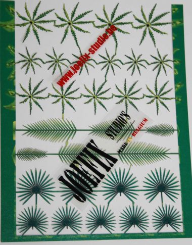 ジャングルに自生する植物の葉を数種セットしました。レーザーカットされた紙製ですが、ツルツルした表面の質感は極めてリアルです。