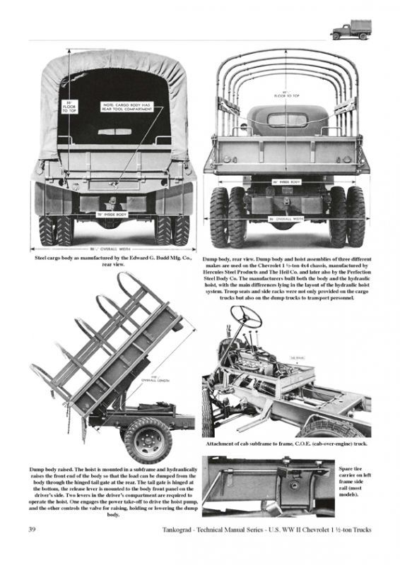 あまりに有名なGMC 2 1/2トラック(ジミー)の影に隠れて目立ちませんが、シボレー 1 1/2 4x4は15万両あまりが生産され、ジープとジミーの間を埋める積載量のトラックとして活躍しました。本書では生産量の半数を占めるカーゴタイプはもちろん、飛行場で使用された爆弾運搬車など9種の派生車についても解説する唯一のモノグラフです。冒頭では派生車の系統をビジュアルに解りやすく解説、中盤はソ連にレンドリースされてカチューシャに改造された個体など含む戦場写真、後半はマニュアル転載図を中心にそのメカニズムや特殊機材を詳説します。入門者からマニアまでどなたにも満足していただける決定版です。