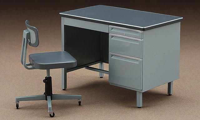 第3弾は事務用机(H:64.6mm、W:88mm)と事務用回転式椅子(H:66.5mm、W:54.8mm)の組立キットが登場!