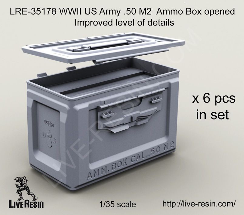 Live Resin[LRE35178]1/35 WWII .50口径機銃100発弾薬箱(開状態)(6個)