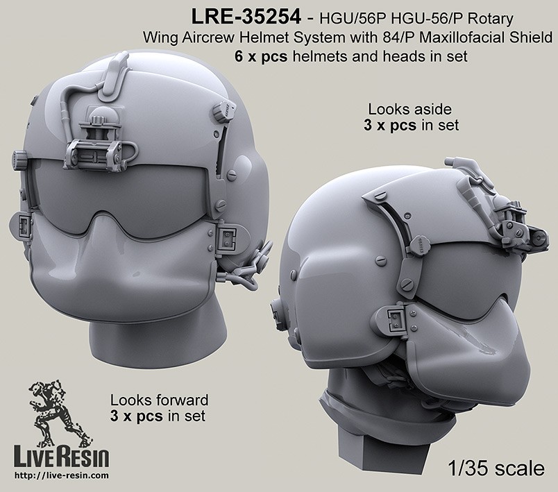 Live Resin[LRE35254]1/35 ヘリパイロットヘッド HGU/56Pヘルメット着用(3)(2種計6個)