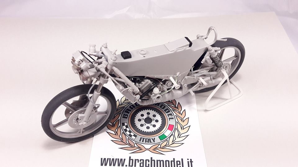 スペインの国民的英雄、アンヘル・ニエト氏は、ワールドグランプリの81年、出場した10レースで8勝を挙げるという圧倒的な成績でチャンピオンになりました。そのマシンが本キットです。同じチームのレジアーニのマシンとはかなりの差違がありますが、その点も忠実に再現しています。様々な異素材を駆使したマニア向けのキットですが、出来上がりは凡百のレジンキットとは比較にならない素晴らしさです。