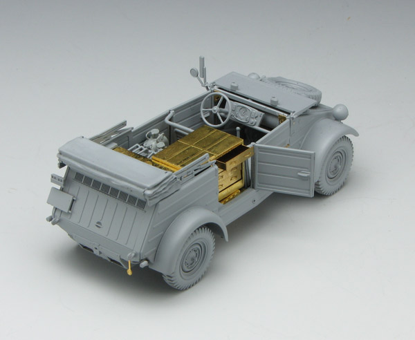 リアシートを取り外し、収納箱を備え付けた「ワークショップ」仕様のキューベルワーゲンを再現しました。