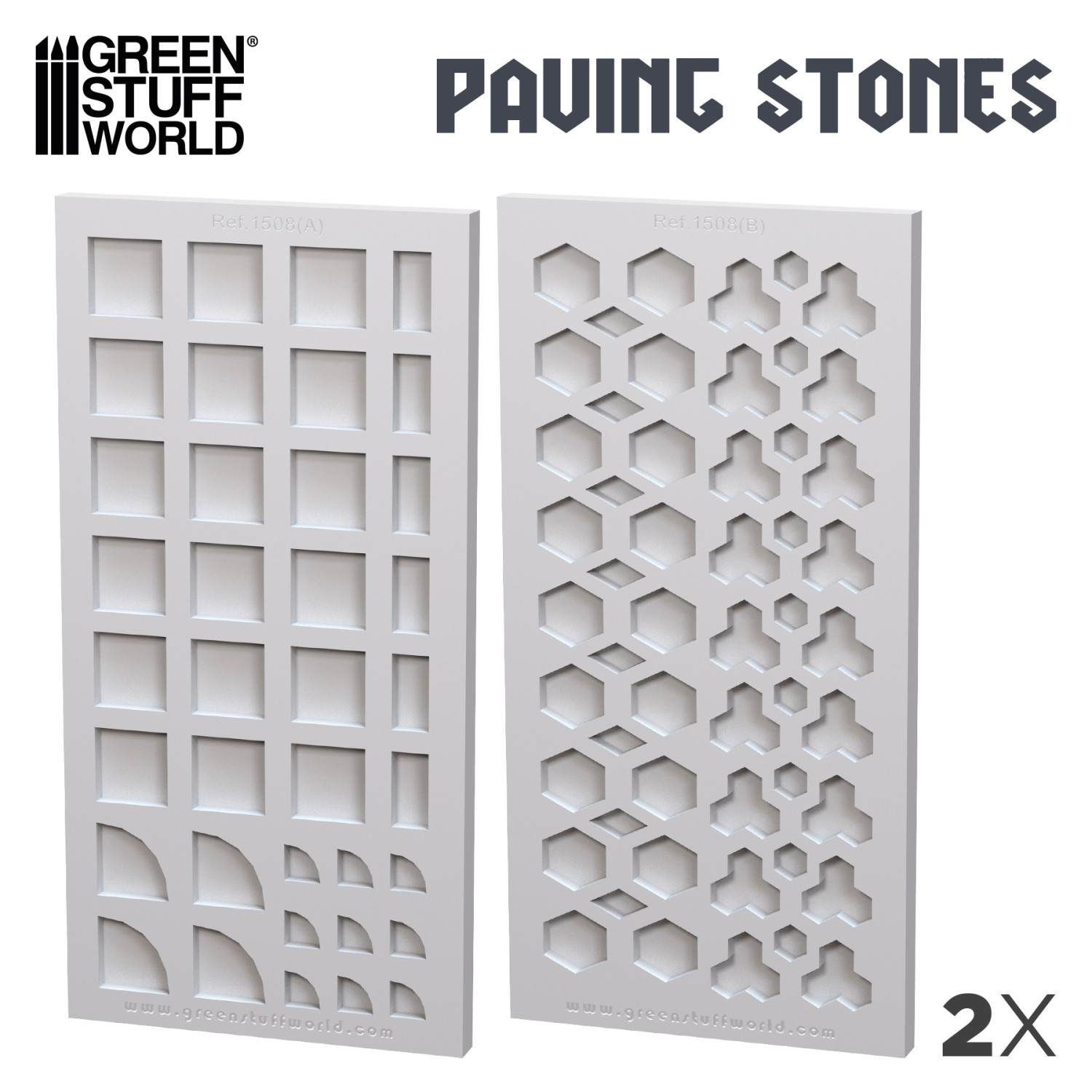セット内容:2枚のシリコンモールド、計8種類の石畳パターンを再現可能