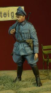 ドイツ国有鉄道は第1次大戦後に発足し、第二次大戦戦時下では占領地の鉄道の運用/管理も行いました。国鉄保護警察は車内での犯罪の取り締まりはもとより、パルチザン対応やスパイの摘発も任務としていました。Ddayらしい精密考証でこのマニアックなフィギュアを再現しています。