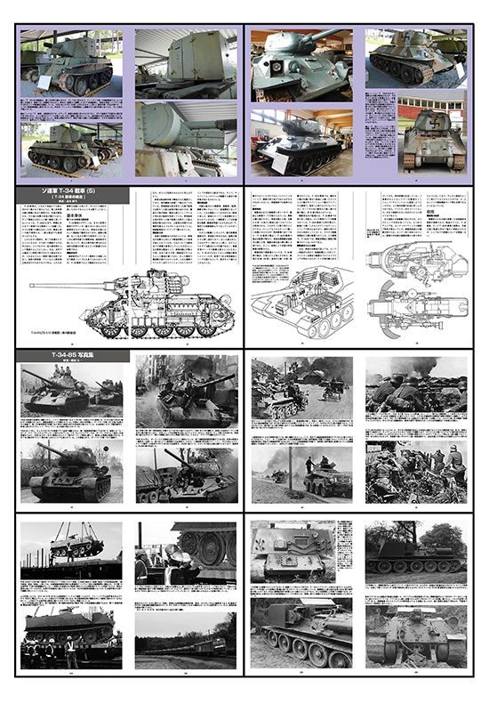 T-34とT-34-85の基本車体、操縦室、戦闘室、砲塔、武装、乗員、エンジンとトランスミッション、走行装置、電気系統/無線機を詳細に解説。24ページ。