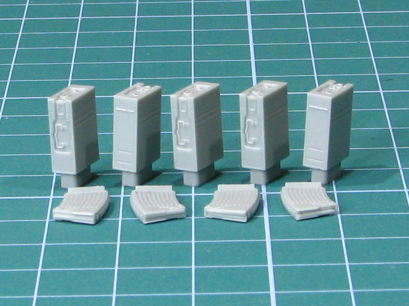 ドイツ軍で対空機関砲として活躍したFlak38用の弾倉とその弾薬を運ぶ弾薬箱のセットです。箱は5個で弾倉は弾丸が充填された物が2個、空の物が2個の合計9個が一つのセットなっています。レジン製