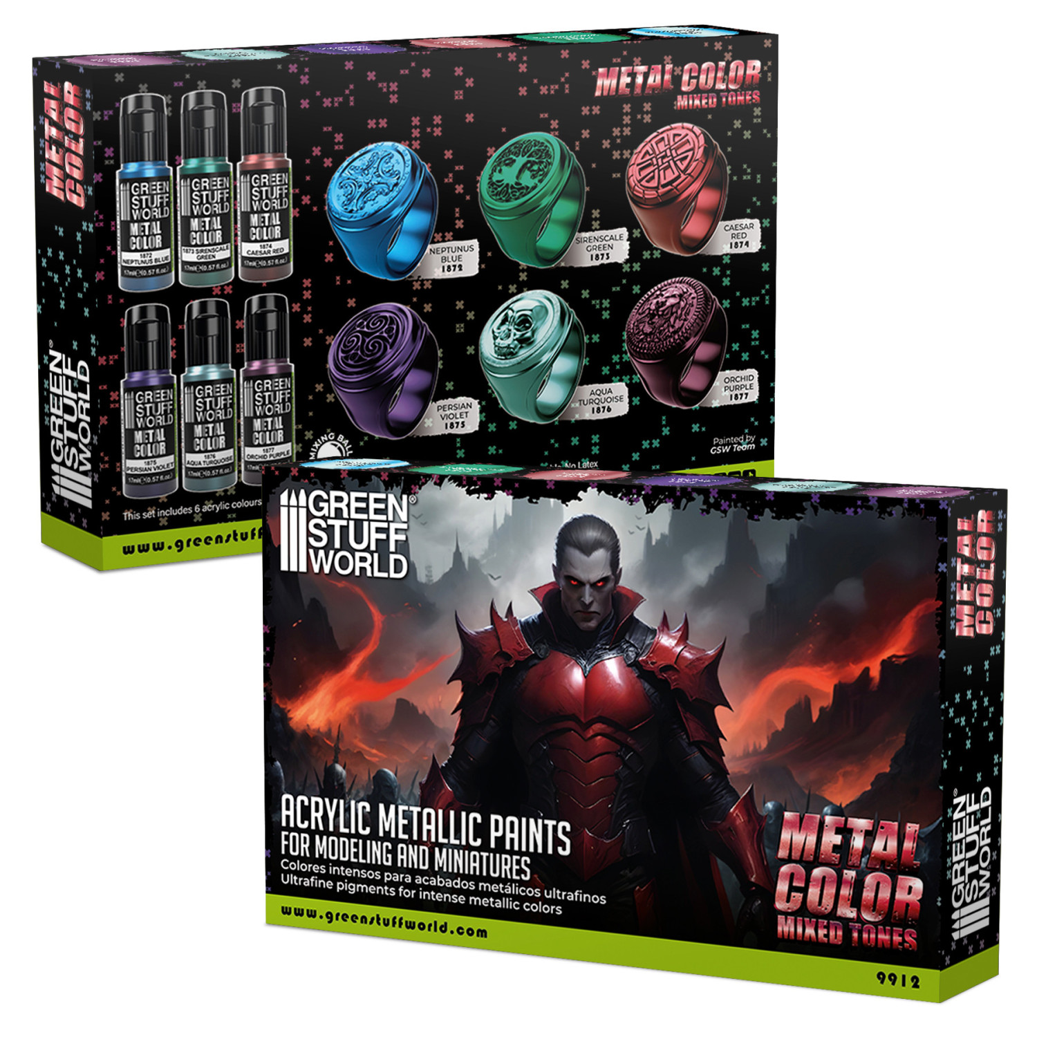 グリーンスタッフワールド[GSWC-9912]水性アクリル塗料 メタルカラーセット - レギュラー(6本入) [2026年4月価格変更]