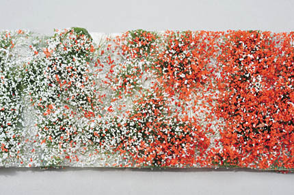 草むらが株単位でシートに貼り付いています。草をピンセットでシートから剥がし、根元にボンドを塗って地面に付けていきます。最もポピュラーで場所を選ばないタイプです。背が高いものと低いものの2パターンが用意されていますが、背が高い草の先を切って、自分で低く加工するのも一つの手です。ミニネイチャーのみを用いる場合、大量に並べて草むらを演出すると実感的に仕上がります。一株一株点在させたい場合は、パウダーやスタティックグラスなどを併用すると雰囲気が出ることでしょう。