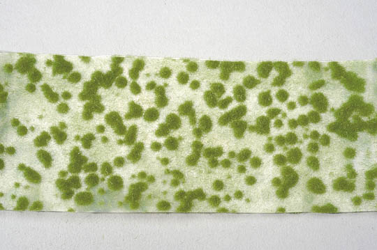 草むらが株単位でシートに貼り付いています。草をピンセットでシートから剥がし、根元にボンドを塗って地面に付けていきます。最もポピュラーで場所を選ばないタイプです。背が高いものと低いものの2パターンが用意されていますが、背が高い草の先を切って、自分で低く加工するのも一つの手です。ミニネイチャーのみを用いる場合、大量に並べて草むらを演出すると実感的に仕上がります。一株一株点在させたい場合は、パウダーやスタティックグラスなどを併用すると雰囲気が出ることでしょう。