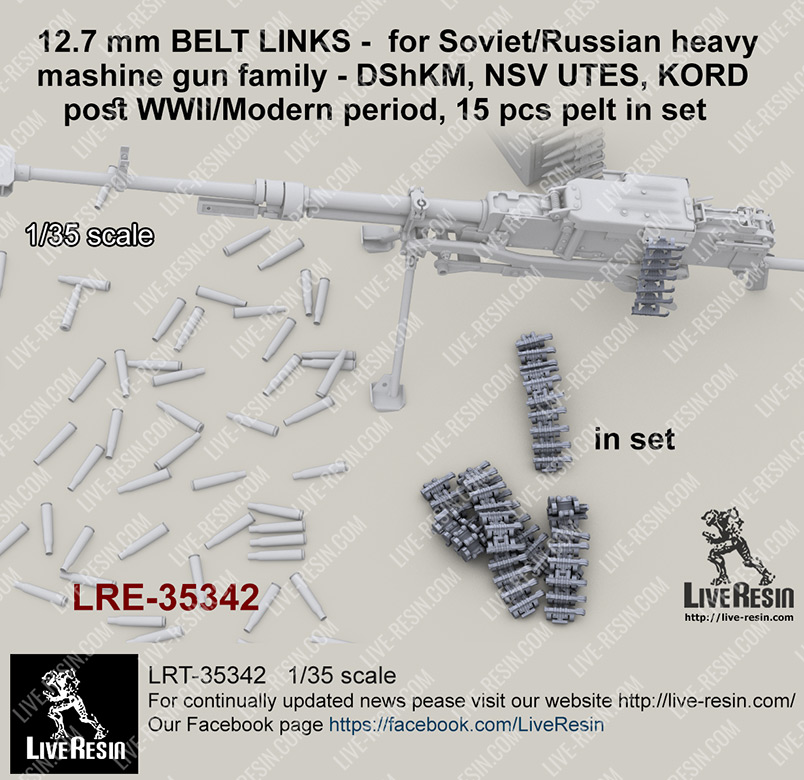Live Resin[LRM35342]1/35 12.7 mm BELT LINKS - for Soviet/Russian heavy mashine gun family - DShKM, NSV UTES, KORD - post WWII/Modern period, 80 pcs in set