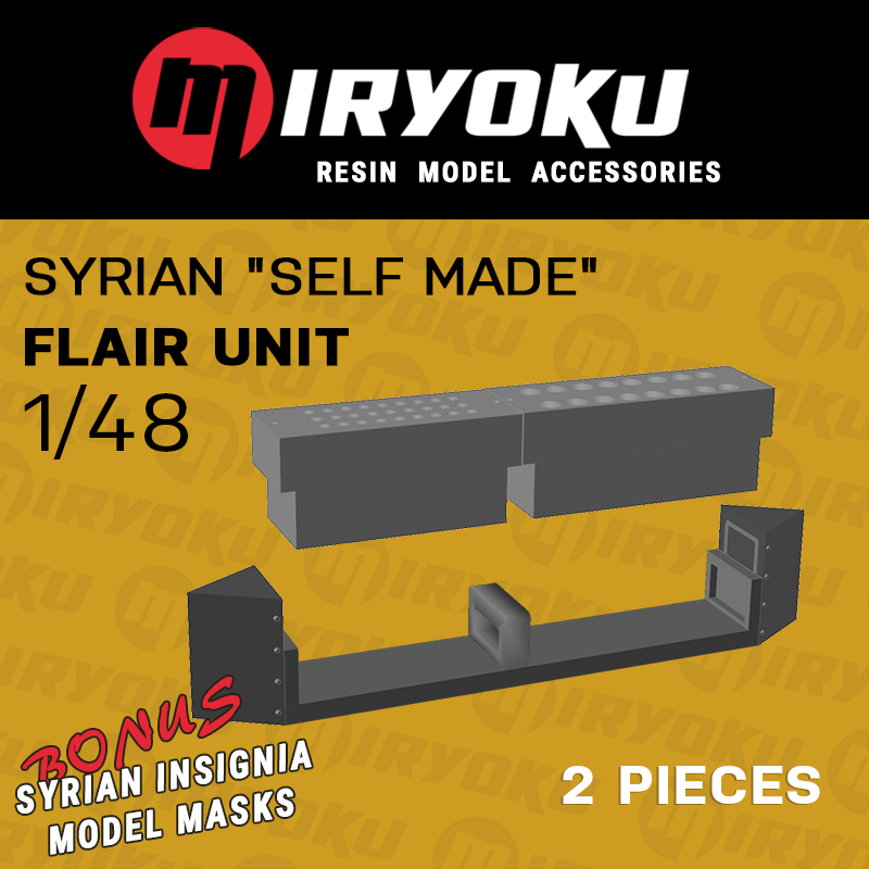 シリア空軍が所属のMiG-23に搭載しているフレア装置を1/48スケールで3Dプリンター出力して再現しました。フレアユニットは発射前と後のどちらかを選択出来ます。1セット2個入3Dプリンター出力によるレジン製