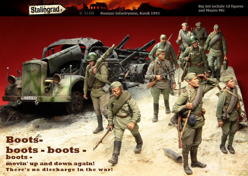 スターリングラード[ST3100]1/35ロシア兵「行軍中」クルスク1943(マキシマムMG付)10体入りビッグセット [2022年11月現在メーカー在庫切れ]