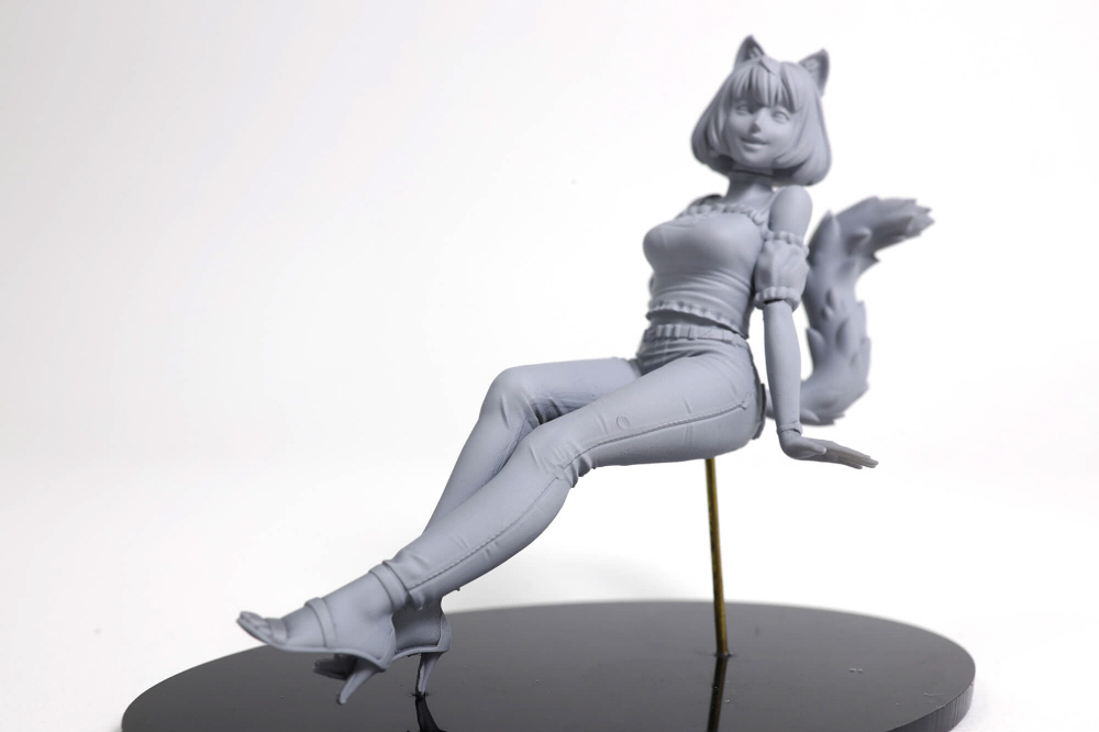 ねこみみモイラさんです。ラブリーな耳と大きな尻尾で普通の人では無い事が判りますね。中国語サイトでは「獣娘」と有りますが獣と言うほど猛々しい感じは無くとてもキュートな感じに仕上がっていると思います。アニメフィギュア寄りでは無く実写的な造形が施されていますので同スケールの自動車モデルと並べて展示すると良いアクセントとなる事でしょう。