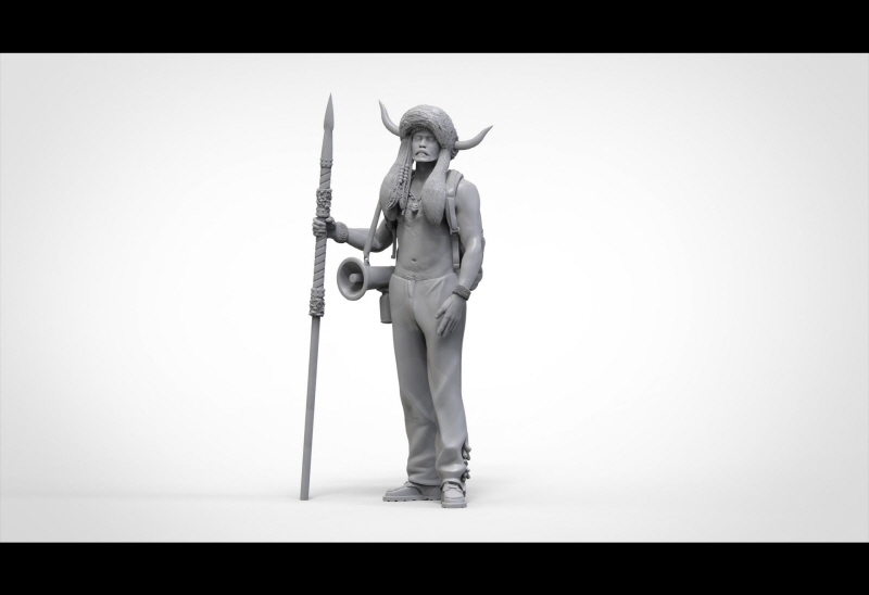 世界の秩序が崩壊した後の時代で有る程度の規模を持つ略奪グループを率いるボスキャラを再現したフィギュアです。恰好が奇抜ですが腰に据えた拡声器を使い雄弁に悪事を正当化する扇動者かと思います。ネイティブアメリカンを参考にした頭部の飾りに背中のデイバックとの対比が塗装で活かせれば面白い仕上がりのフィギュアとなるかと思います。