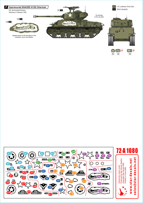 STAR DECALS[SD72-A1080]1/72 WWII 米軍AFV特集#1 M4A3E8イージエイトHVSS 欧州1944〜45