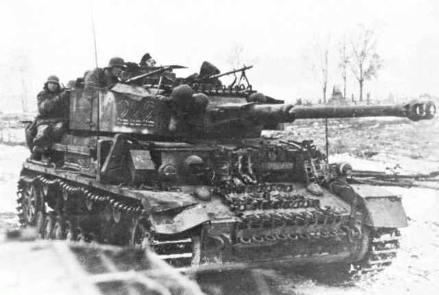 IV号戦車に乗り前線へ移動する擲弾兵を再現したフィギュアです。戦車の車体外部に搭乗して移動もしくは戦闘する事をタンクデサント(戦車跨乗)と呼び搭乗する兵士を跨乗兵と称しました。この跨乗兵は1943年以降の冬季装備で対戦車兵器のパンツァーファーストを持っている所から大戦後期で冬季の東部戦線や欧州戦線の兵士としてお使い頂けます。