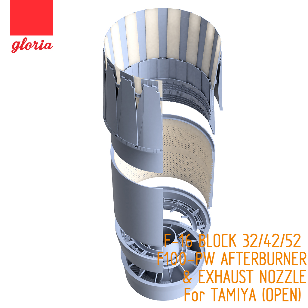 E.T.MODEL[GR48016A]1/48 現用 米 アメリカF-16Cブロック32/42/52 F100-PWアフターバーナー&排気ノズル開口状態(タミヤ用)