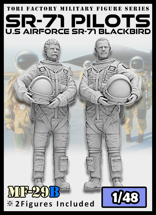 1950年代から極秘裏に開発が始まり1960年代前半に実用化した世界最速の航空機が戦略偵察機がSR-71ブラックバードです。その特殊性から飛行には非常に神経を使うSR-71のパイロットと偵察任務を行う偵察システム士官(RSO)の立像をセットでフィギュアにしました。高高度を飛行する為の高度与圧服と専用ヘルメットをしっかりと再現しています。1/48スケールのSR-71と合わせて展示する事で同機の大きさが良く判る絶好のフィギュアセットと言えるでしょう。高品質レジン製 ※本製品は未塗装未組立です。