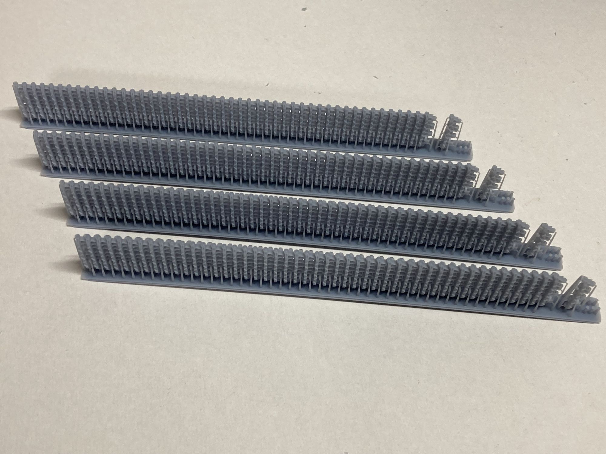 CHINOMODELでは、ハード面の制約と、「作る楽しさ」を残すため、全て連結された状態ではなく、2~30枚程度の塊をいくつかと、調整用の個別履帯を連結して作成する方式を取っております。