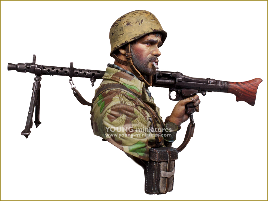 Young Miniatures[YM1892]1/10 WWII ドイツ降下猟兵胸像 MG34を担ぐ降下猟兵