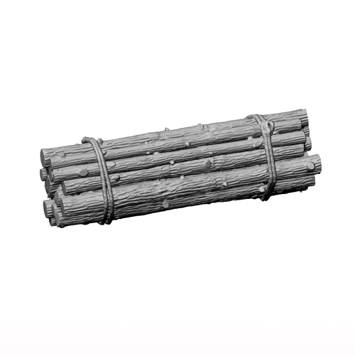 戦車や装甲車等の側面に下げて悪路脱出用資材としたり対戦車兵器の防御材とする丸太の集束材を1/35スケールでキット化したアクセサリーセットです。枝落しした丸太をロープで束ねた物を再現しておりそのままワイヤー等で戦車等の側面に吊るしていました。束ねた丸太は同一に見えないよう向きや形を変えた物が三種類ほど用意されているので吊るす向きや方向を変えるだけで形が揃うと言う違和感が生じません。ドイツのタイガー重戦車が東部戦線でこの様な丸太を束ねて側面に吊るした例が有るのでそう言った姿をモデルで再現できます。また車載される運搬品や集積場での資材などにも活用できます。レジン製 ※本製品は未組立未塗装です。