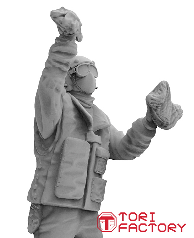 アメリカ海軍が運用する原子力航空母艦で作戦機を操縦するアビエーター(パイロット)と同等に重要なのが甲板作業員です。別名「レインボーギャング」と言われ、業種別に色分けする事で作業の効率化と役割の明確化を図っています。海上で訓練を終え空母に帰還した機体は塩害から守る為に洗浄する必要があります。これら洗浄作業を行う甲板作業員を1/32スケールでキット化しました。機体をクリーニングタオルで拭き掃除する作業員は5体を一セットにしてそれぞれ違う姿勢で再現しました。飛行甲板上で行われる作業の一環をジオラマで表現できる貴重なフィギュアセットです。レジン製 5体入